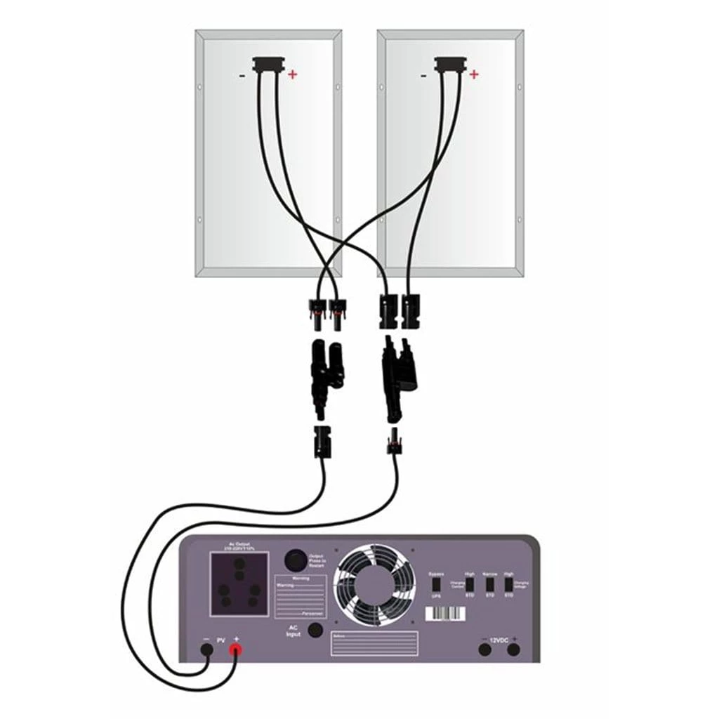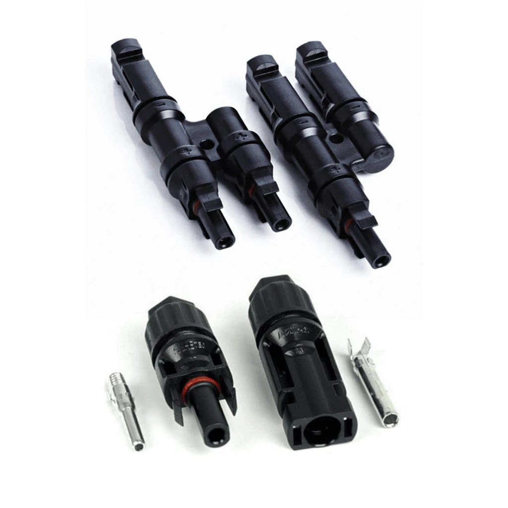 2 panel MC4 T-type connector connects 2 solar panels from 10 watts to 400 watts. IP 67 rating makes it waterproof and dustproof for outdoor use.Â