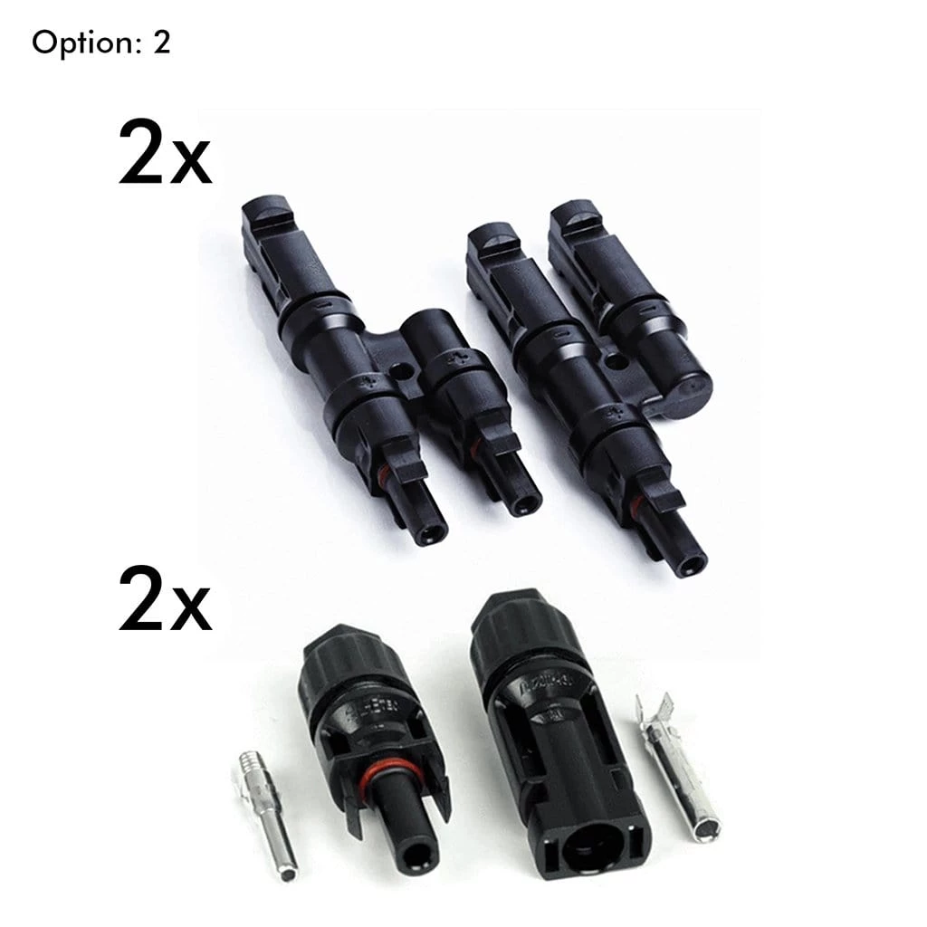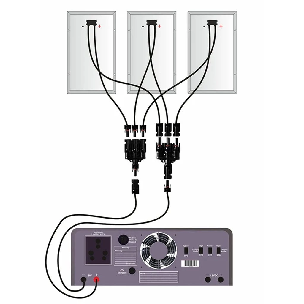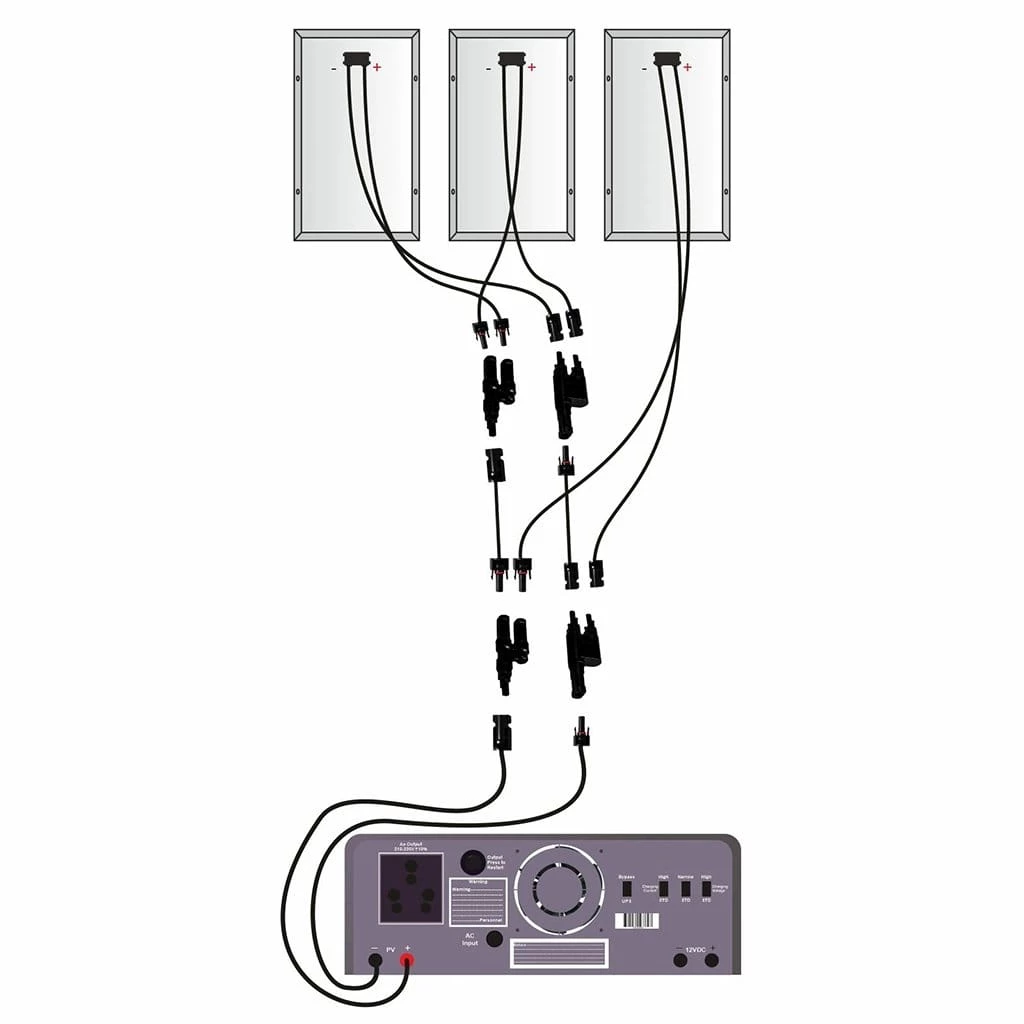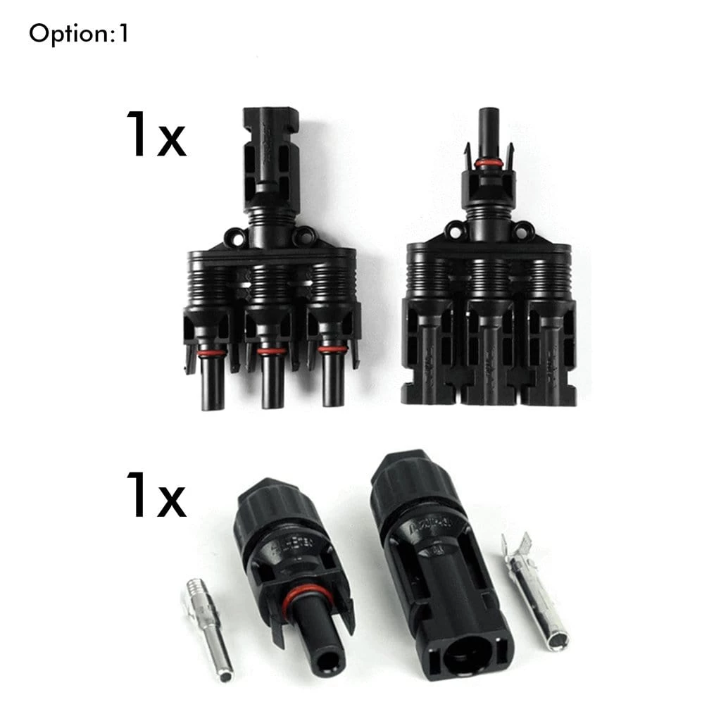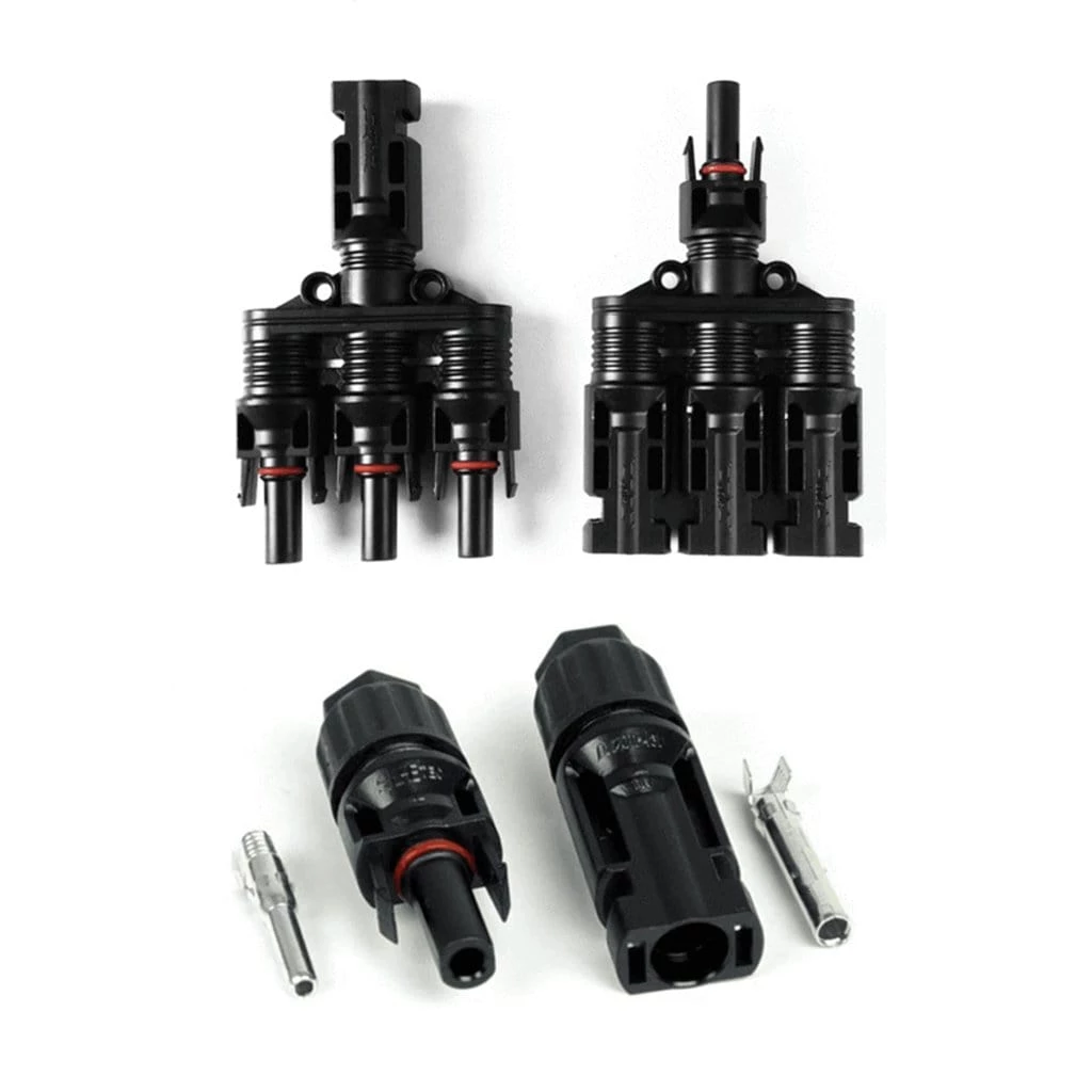 3 Panel MC4 -T type connector connects 3 solar panels from 10 watts to 400 watts. IP 67 rating makes it waterproof and dustproof for outdoor use.
