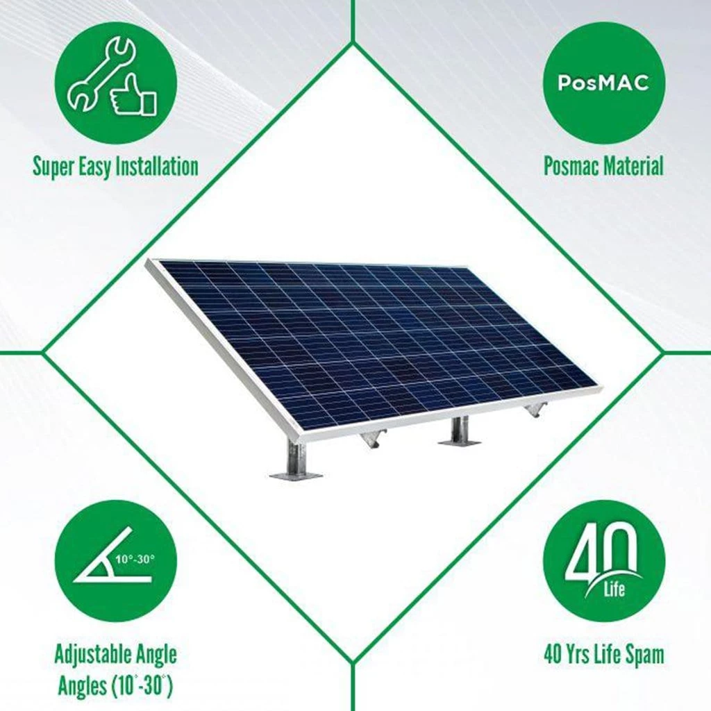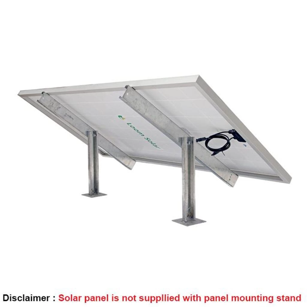 Loom solar introduces portable solar mounting structure / solar panel stand to fix 1 no. of the solar panel. A solar panel from 320 watts ~ 450 watts of many brand and many make can be installed on a home roof. The portable solar panel stand is made of galvanized iron, the rust-proof solar panel stand life is more than 25 years.