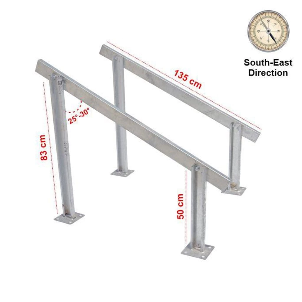 Loom Solar introduces portable solar mounting structure / solar panel stand to fix 2 nos. . A solar panel from 100 ~ 190 of many brand and many make can be installed on a home roof. The portable solar panel stand is made of galvanized iron, the rust-proof solar panel stand life is more than 25 years.